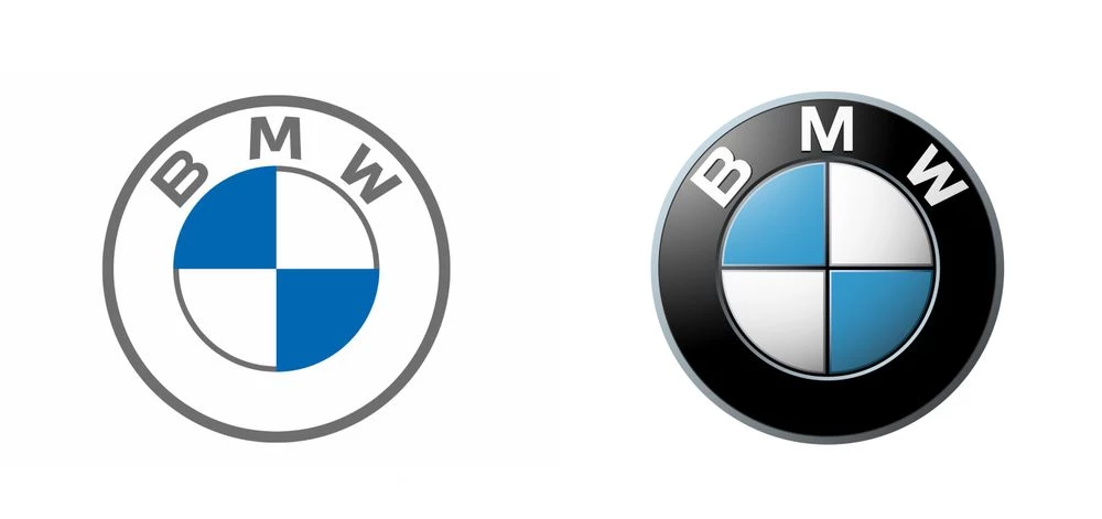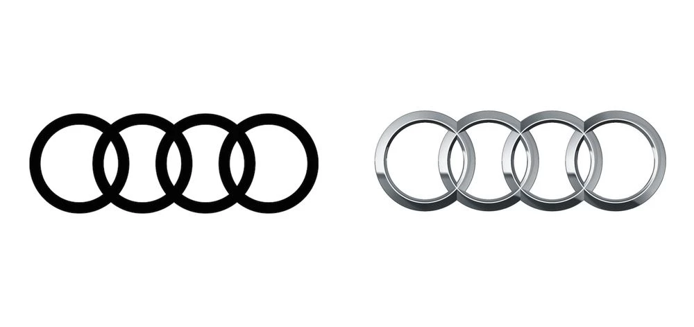 The four rings first appeared in 1932 and have been a staple of Audi's branding since 1932, aside from a brief stint in the 1970s when Audi opted for a text-based logo. Audi has always appeared slightly more modern than their competitor, this logo flattening continues that trend.