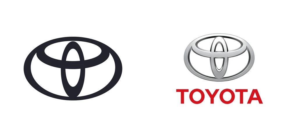 Not only has Toyota opted for a flattening of their logo, but they've also abandoned the wordmark. Toyota is among the few brands in the world that has a logo that's noticeable enough to drop the wordmark. This elite club of companies that can drop the wordmark from their logo consists of McDonald's, Apple, Starbucks, Instagram, Nike and a couple of car manufacturers.